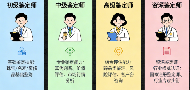 - 进阶路径:新手鉴定师 → 基础鉴定师 → 资深鉴定师 → 鉴定主管 → 技术负责人,也可自主创业。
