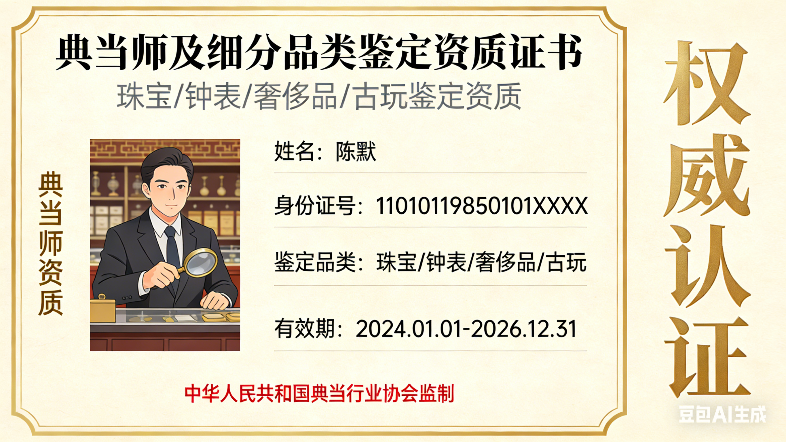 - 典当师资质证书:由地方金融管理部门或行业协会颁发,是从业基础凭证。