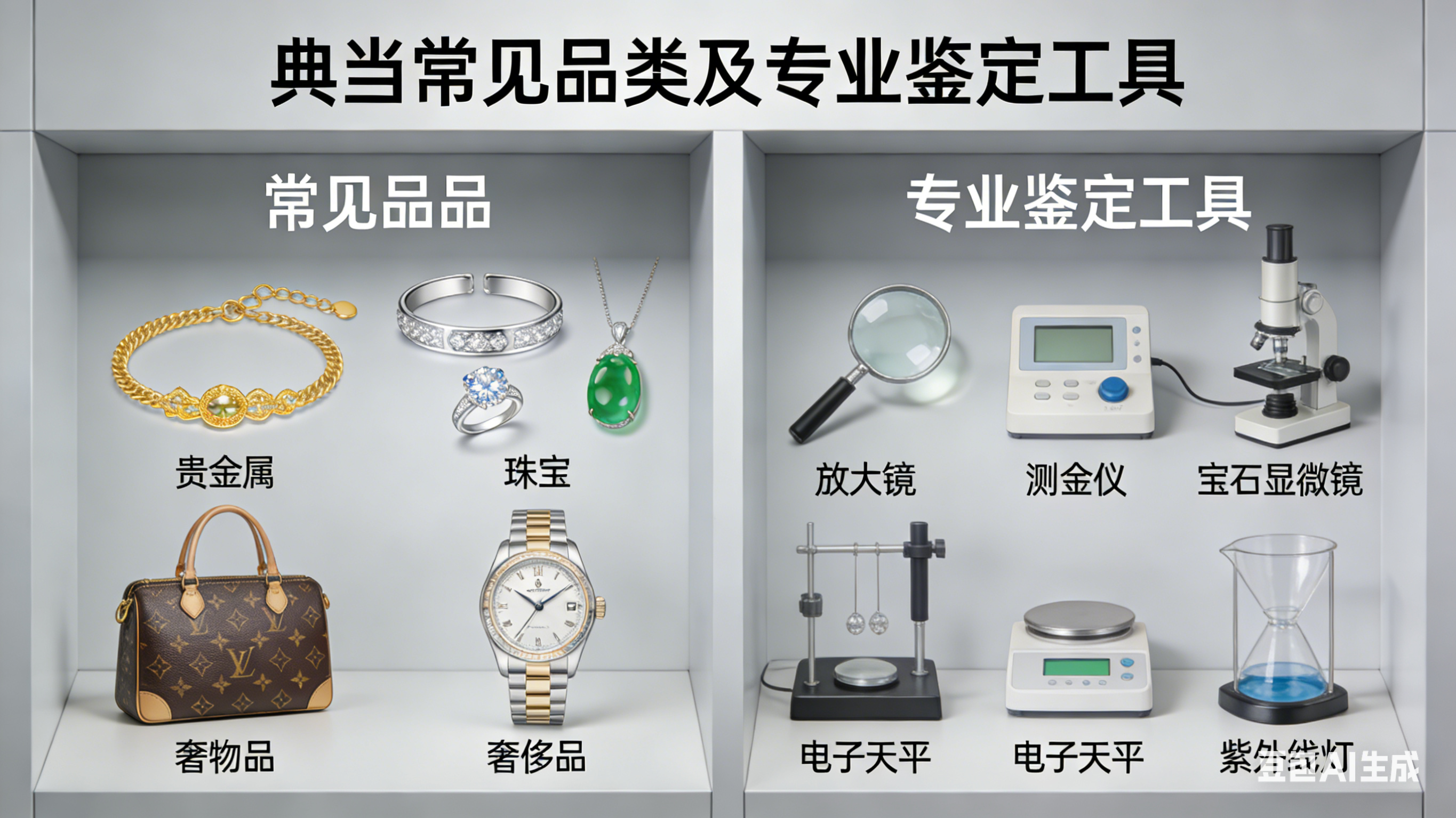 - 鉴定评估:掌握贵金属成色分级、珠宝玉石鉴定、奢侈品真伪辨别等要点。